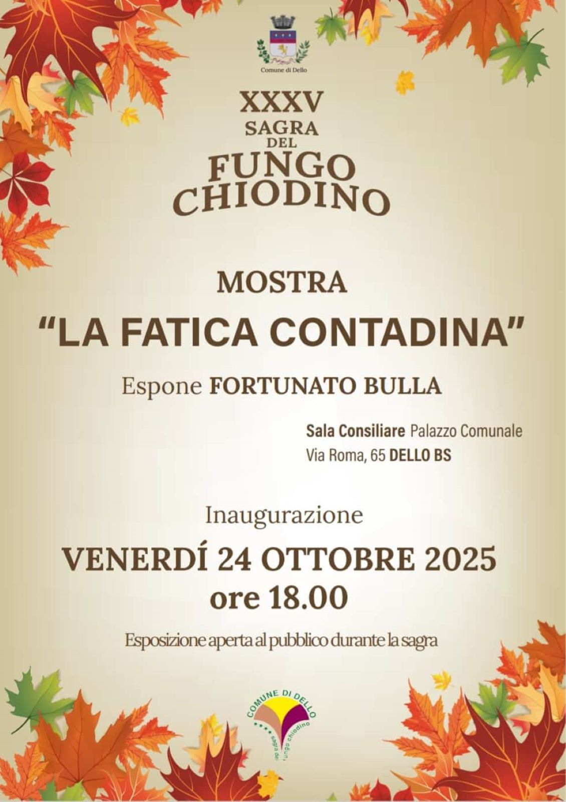 - venerdì 24 ore 18.00 - Inaugurazione mostra "LA FATICA CONTADINA (Espone Fortunato Bulla - Sala Consiliare, Comune di Dello)