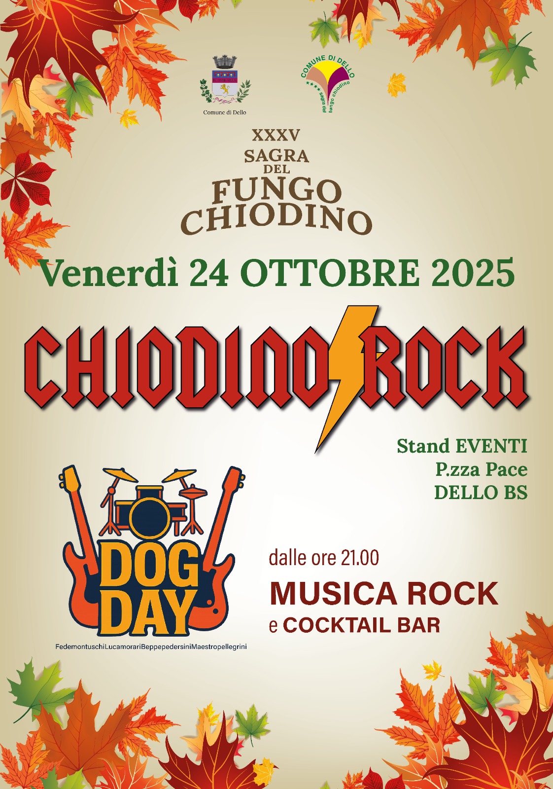 - venerdì 24 ore 21.00 - DOG DAY - Chiodino Rock (Musica rock e cocktail bar - Stand Eventi, Piazza Pace)